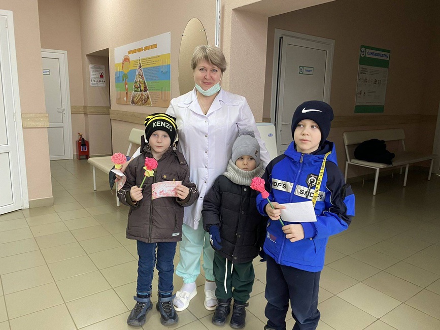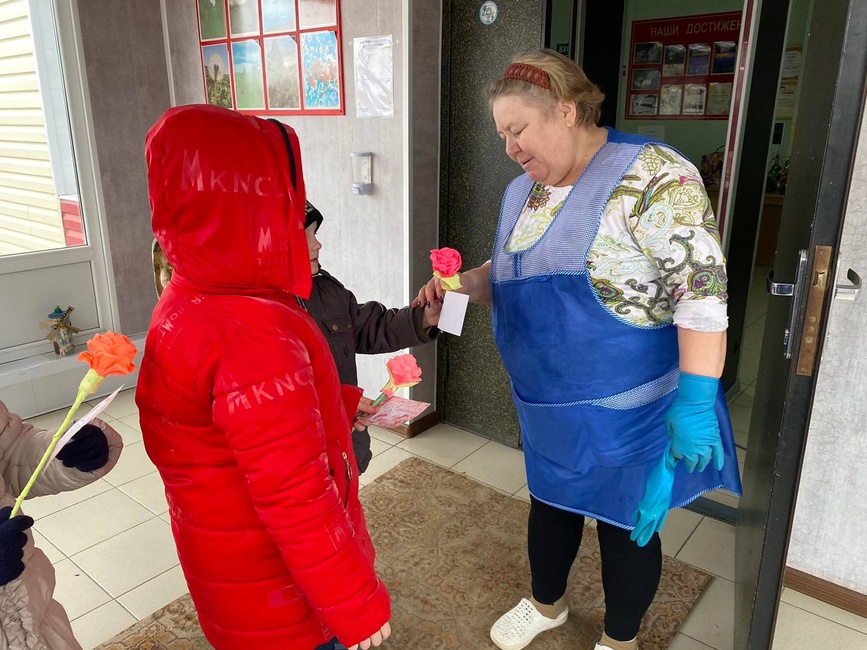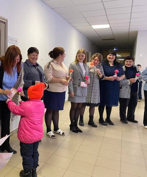 В преддверии празднования 8 марта, ребята из детского сада не только поздравили своих мам, но и проявили внимание к другим женщинам. Они подготовили поздравления для работниц клуба, библиотеки, больницы, почты и конечно же школы. Дети рассказали стихи, подарили открытки и цветы, сделанные своими руками.
