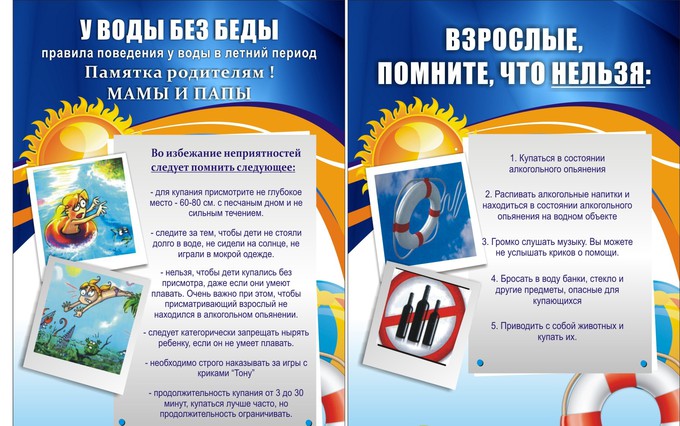 5. Детям нельзя находиться около водоёмов без постоянного контроля родителей или других взрослых.Купание детей должно происходить только под контролем родителей. Нельзя отворачиваться даже на минуту.