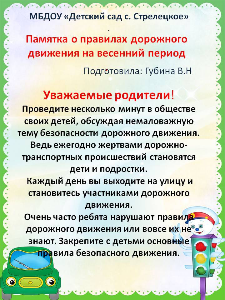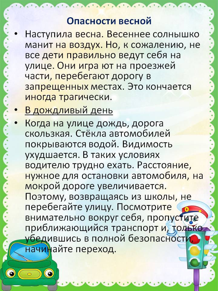 Памятка для родителей о правилах дорожного движения в весенний период