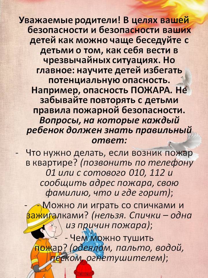 Пожарная безопасность для детей (Консультация для родителей)